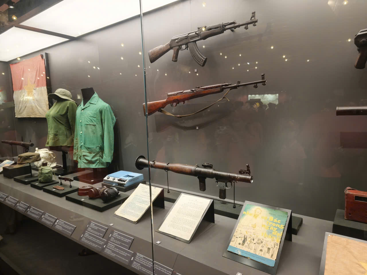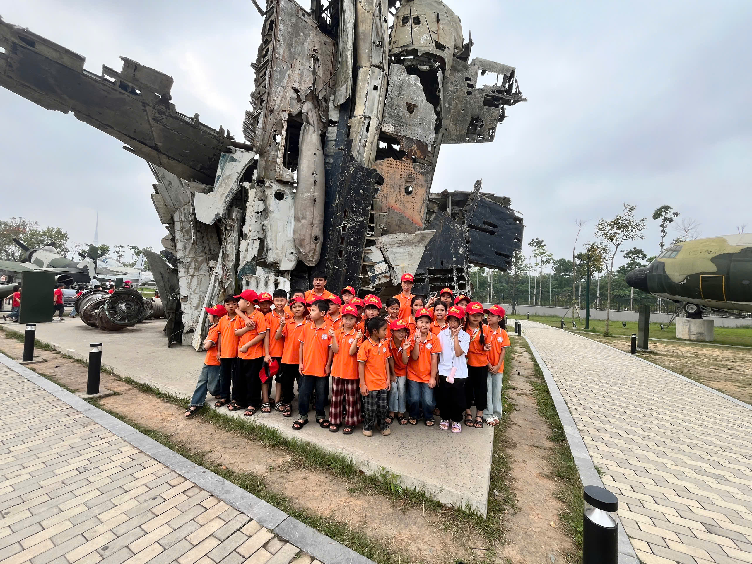 Điểm dừng chân đầu tiên là Bảo tàng Lịch sử Quân Sự Việt Nam. Tại đây, thầy cô và các em học sinh cùng chiêm ngưỡng thiết kế hiện đại, nhiều công năng, kiến trúc Bảo tàng không chỉ đơn thuần là một công trình trưng bày về lịch sử chiến tranh, mà còn tạo một không gian chung để khách tham quan tương tác và trải nghiệm về cuộc đấu tranh giành độc lập dân tộc của Quân đội nhân dân Việt Nam anh hùng.